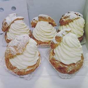 シュークリームはフランス語のシュ(Chou)と英語のクリーム(Cream)から生まれた日本独自の呼び名です。英語ではクリームパフ(Cream Puff)、フランス語ではシュー・ア・ラ・クレーム(Chou à la Crème)と言います。
