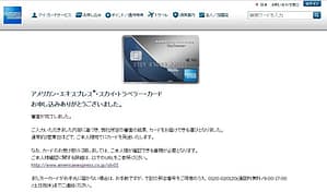 アメリカン・エキスプレス・スカイ・トラベラー・カードの申し込みは直接ウェブサイトから行ったのですが、最近よく耳にするクレジットカードの10秒審査という自動審査で即カード発行となりました。その時の画面を保存したものが下記の画像になります。
